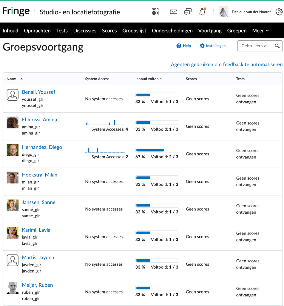 Vergroot de studentenbetrokkenheid en maak het voor studenten eenvoudiger om met elkaar in contact te komen en elkaars prestaties te zien door een foto en profiel van elke student in het hele systeem weer te geven.