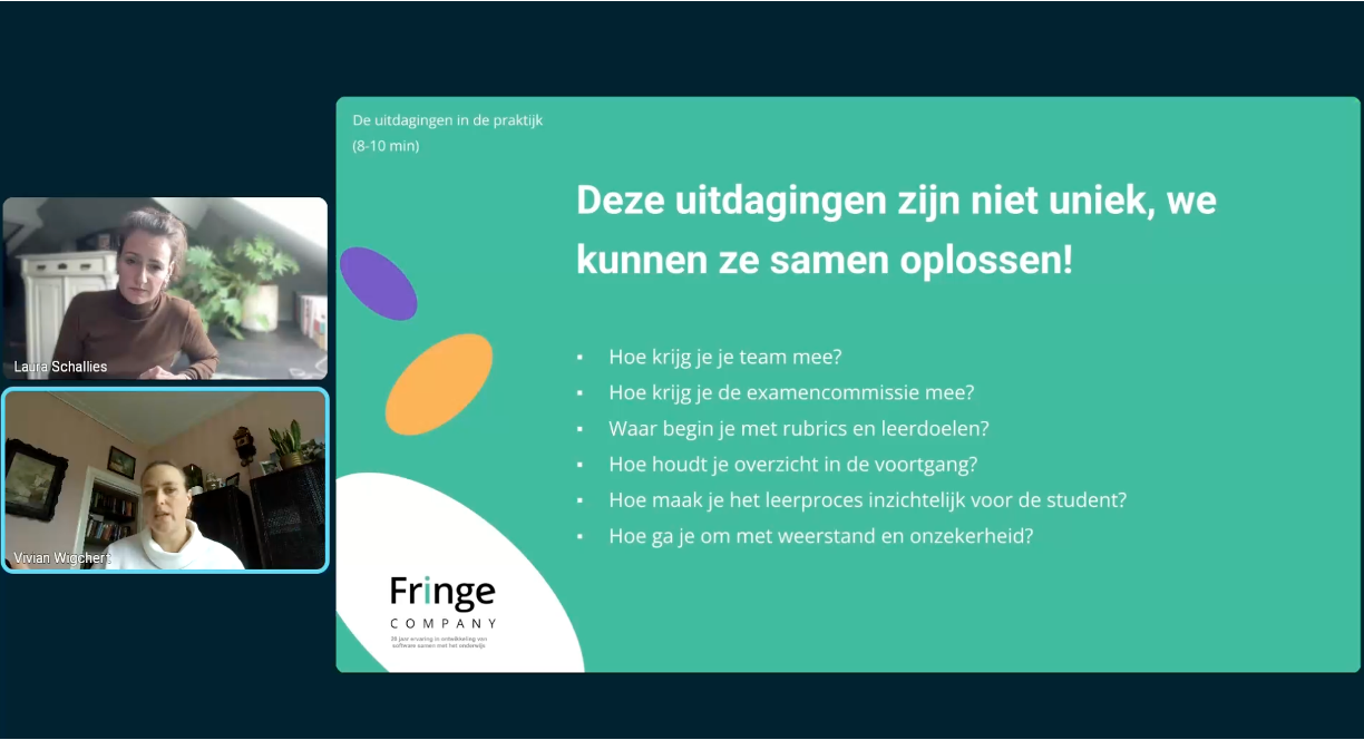 Vivian deelde hoe ROC Rijn IJssel startte met proeftuinen. Haar belangrijkste les? Begin niet zomaar met het schrijven van rubrics voor vakken, maar start bij het kwalificatiedossier.